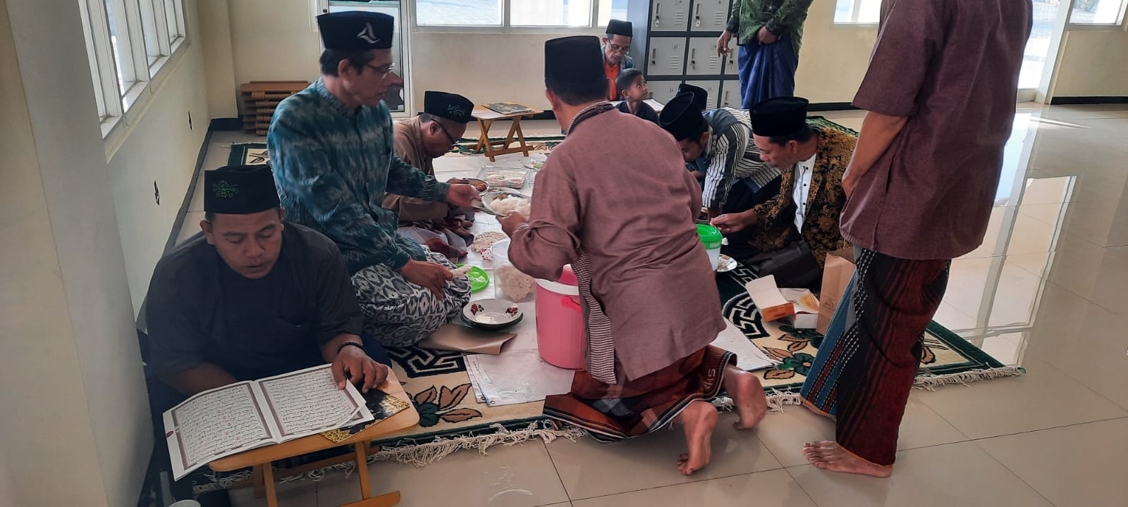 Sekitar lima belas orang yang hadir dari pengurus LDNU, Ranting NU mulai jajaran Syuriyah dan Tanfidziyah, Banom dan Lembaga NU serta jamaah masjid Manarul Ilmi, mereka semua dengan khusyuk antusias membaca Al Qur’an bergiliran per juz.