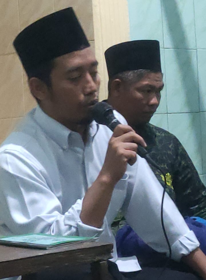 Foto M. Fauzi Ashbi Sekretaris LDNU Kebonsari sedang membuka acara Jam’iyah Sholawat Diba.