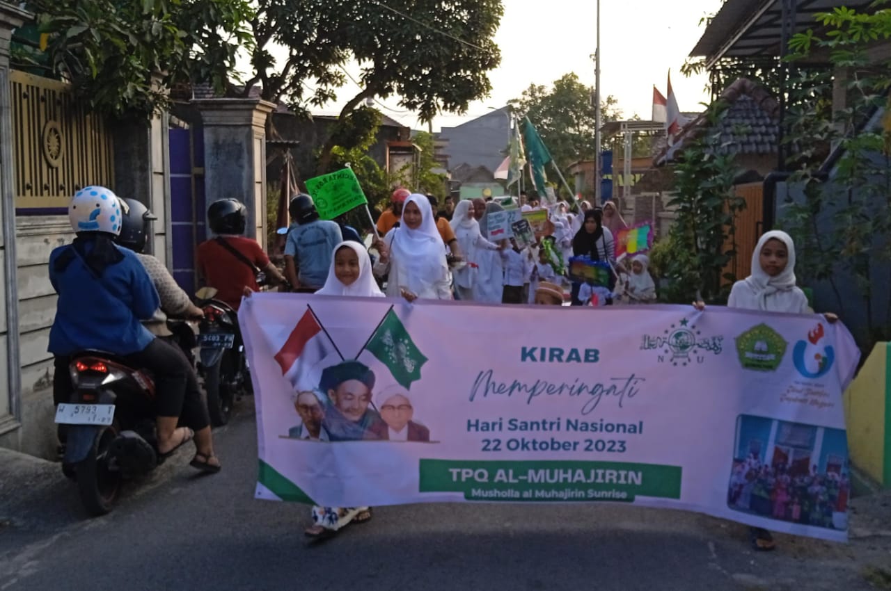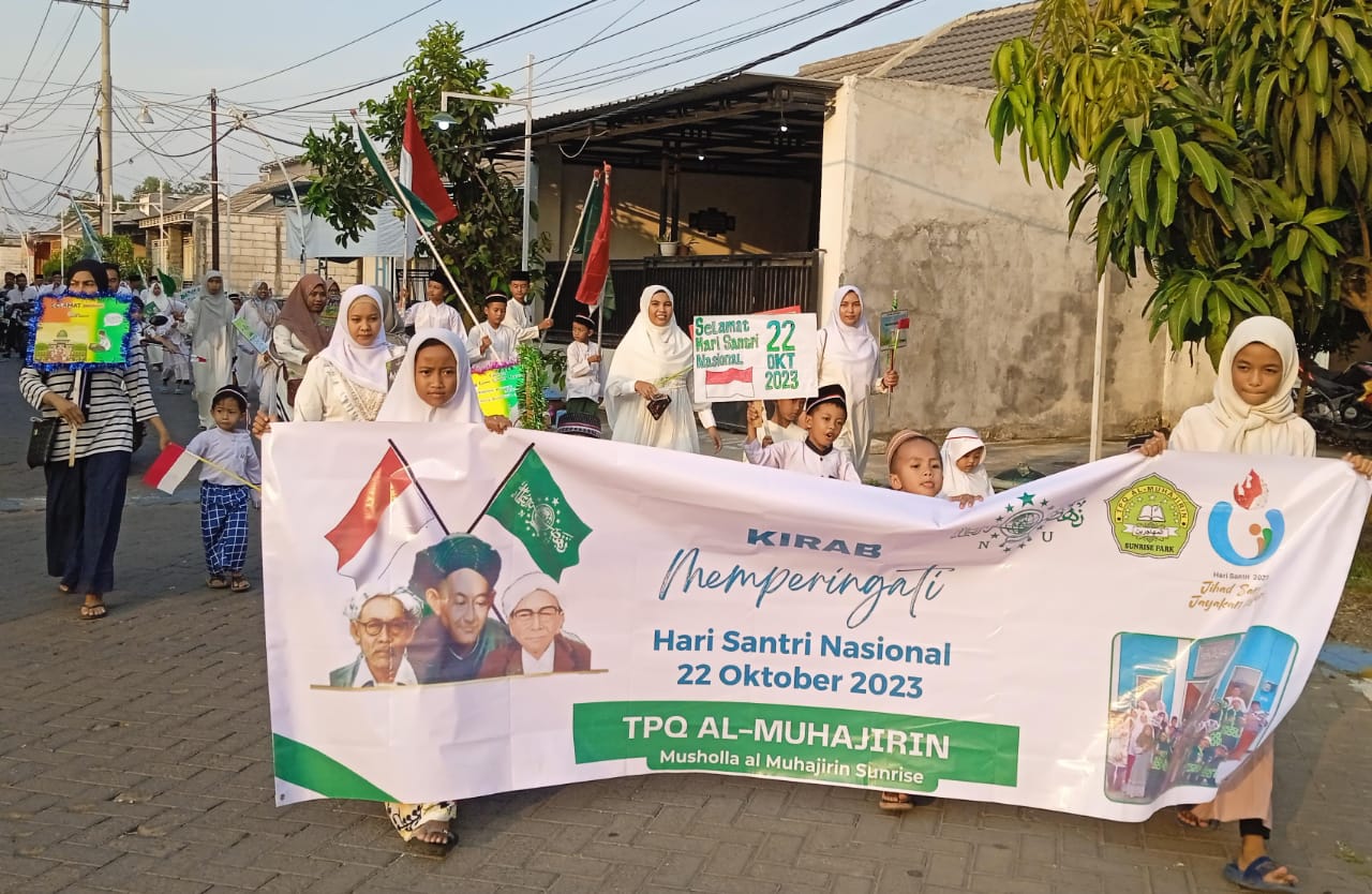 KIRAB HARI SANTRI NASIONAL 2023 OLEH SANTRI TPQ MUSHOLLA AL-MUHAJIRIN SUNRISE RANTING NU KEBONSARI