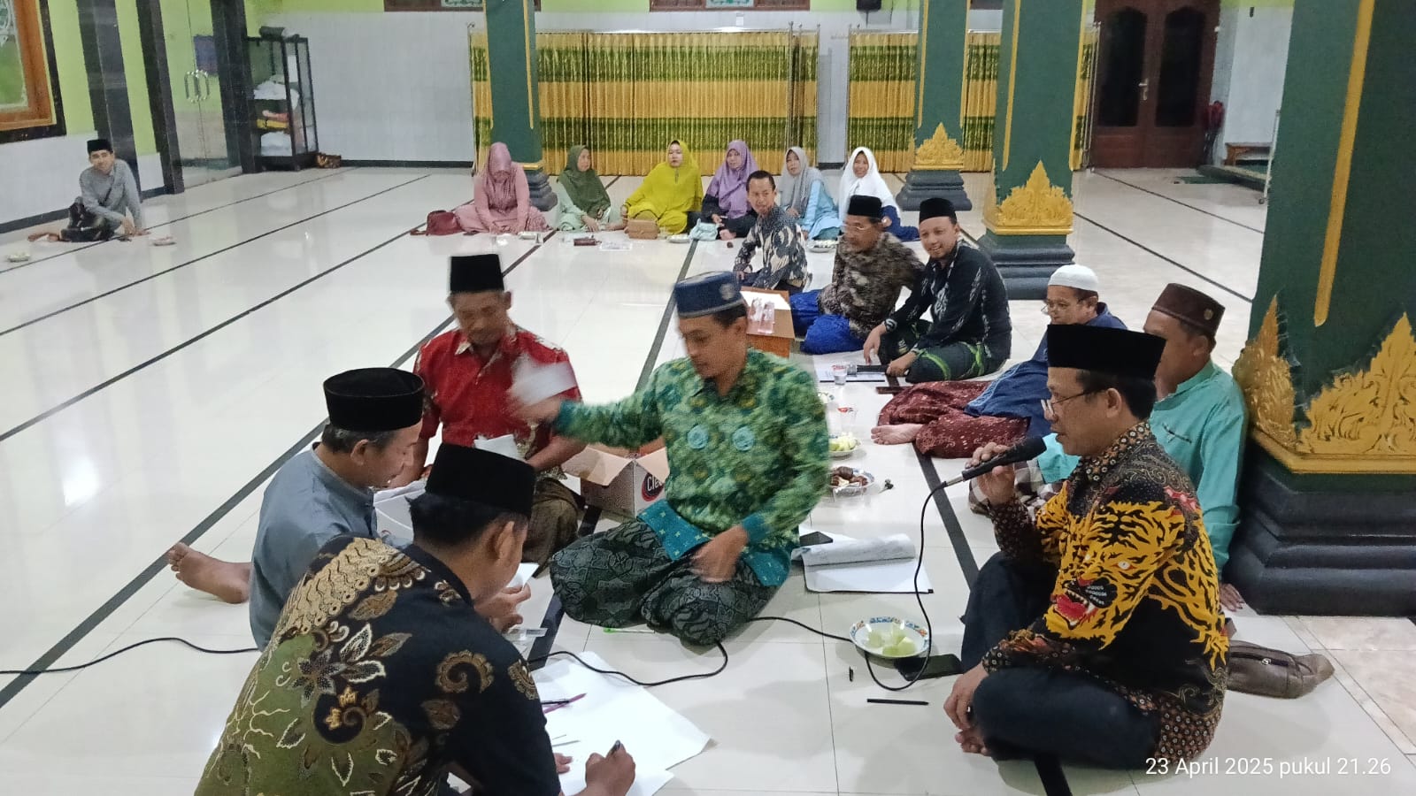 Ranting-NU-Kebonsari, Sidoarjo – Pengurus Ranting NU Kebonsari Kecamatan Candi Kabupaten Sidoarjo mengadakan gelar LPJ Pengurus Takmir Masjid Al Mubarak Periode 2021-2024 sekaligus pemilihan Ketua Takmir Masjid Al Mubarak Masa Khidmat 2025-2028 di masjid Al Mubarak (23/04/2025) Rabu malam.