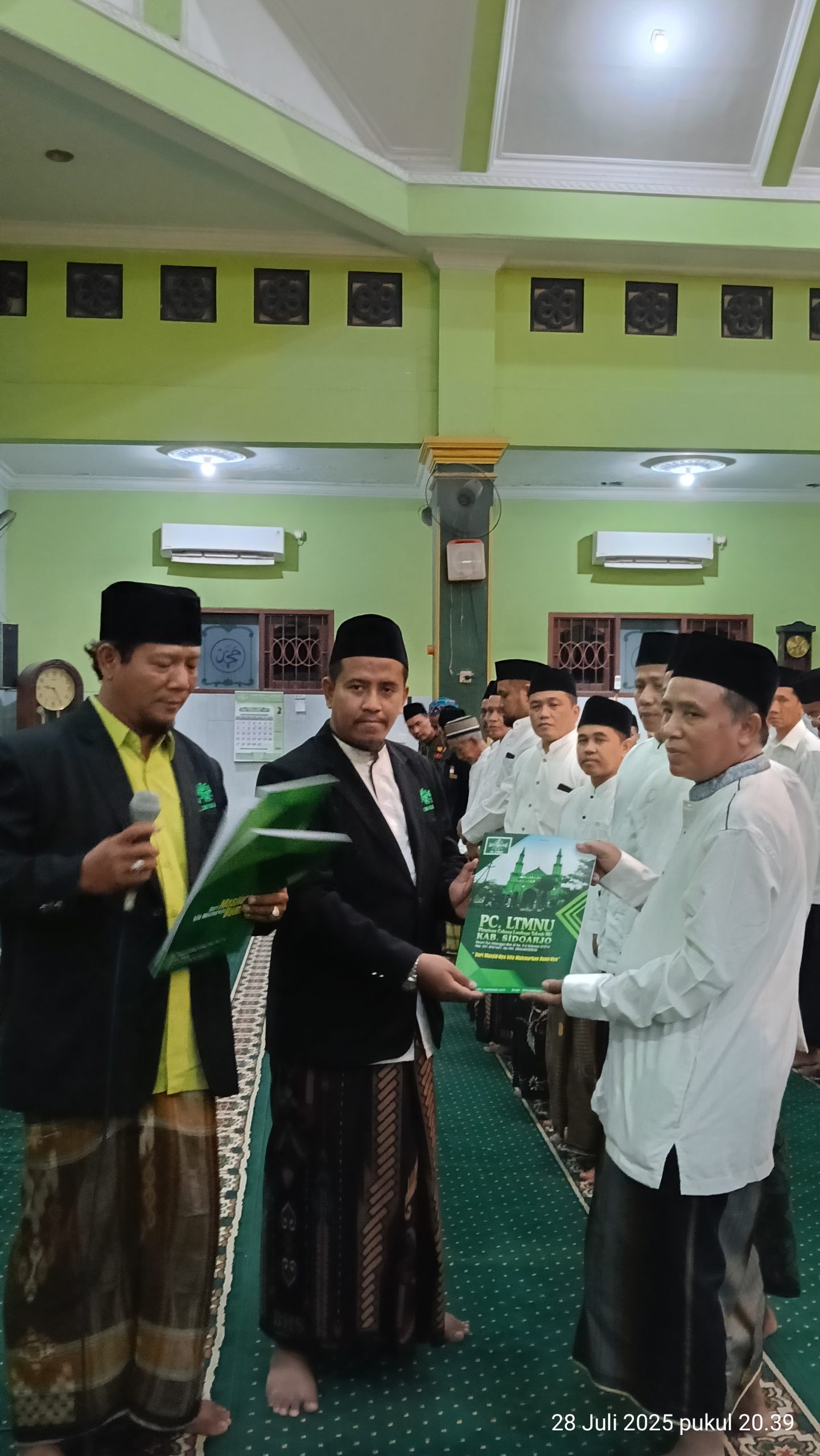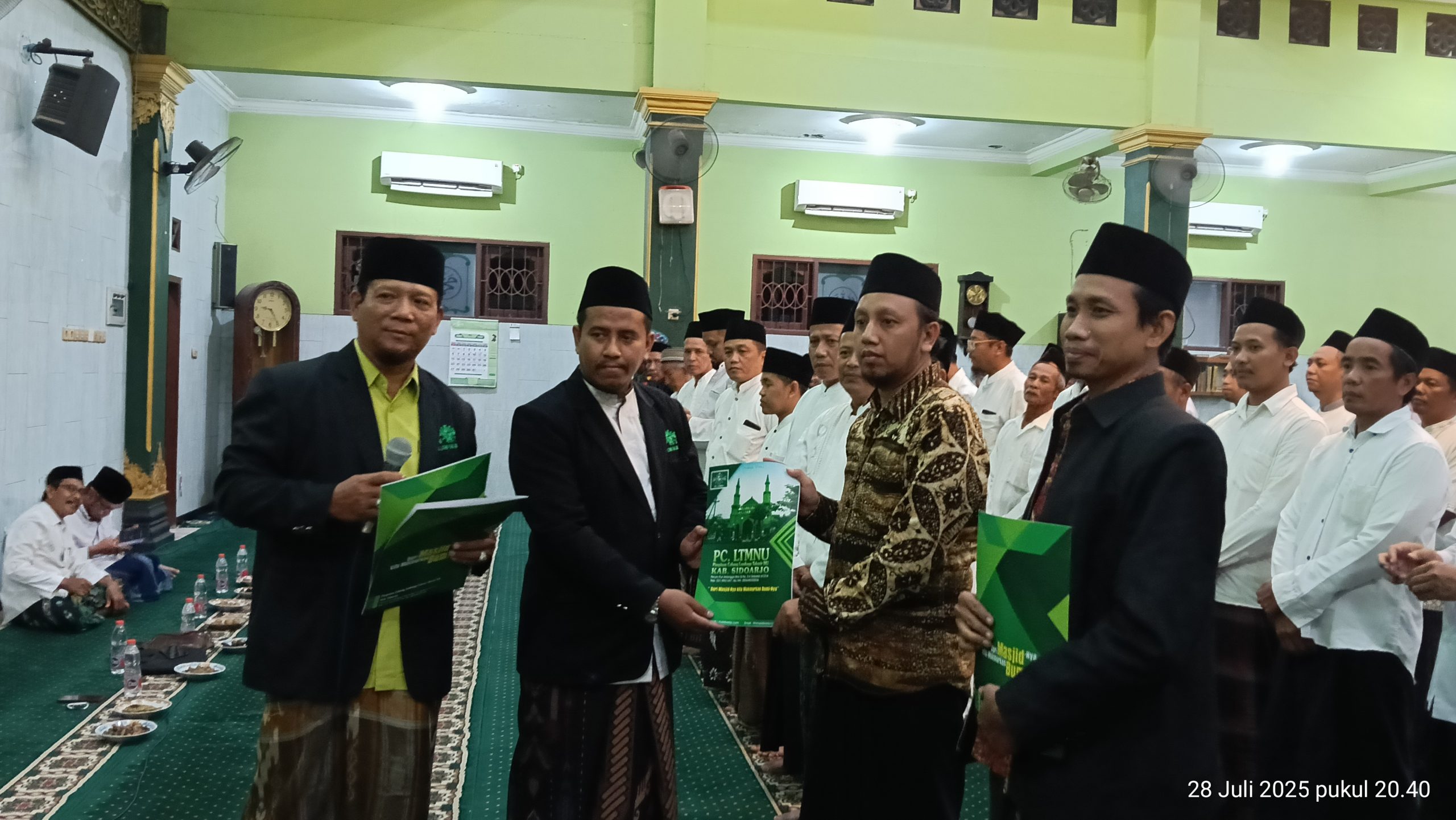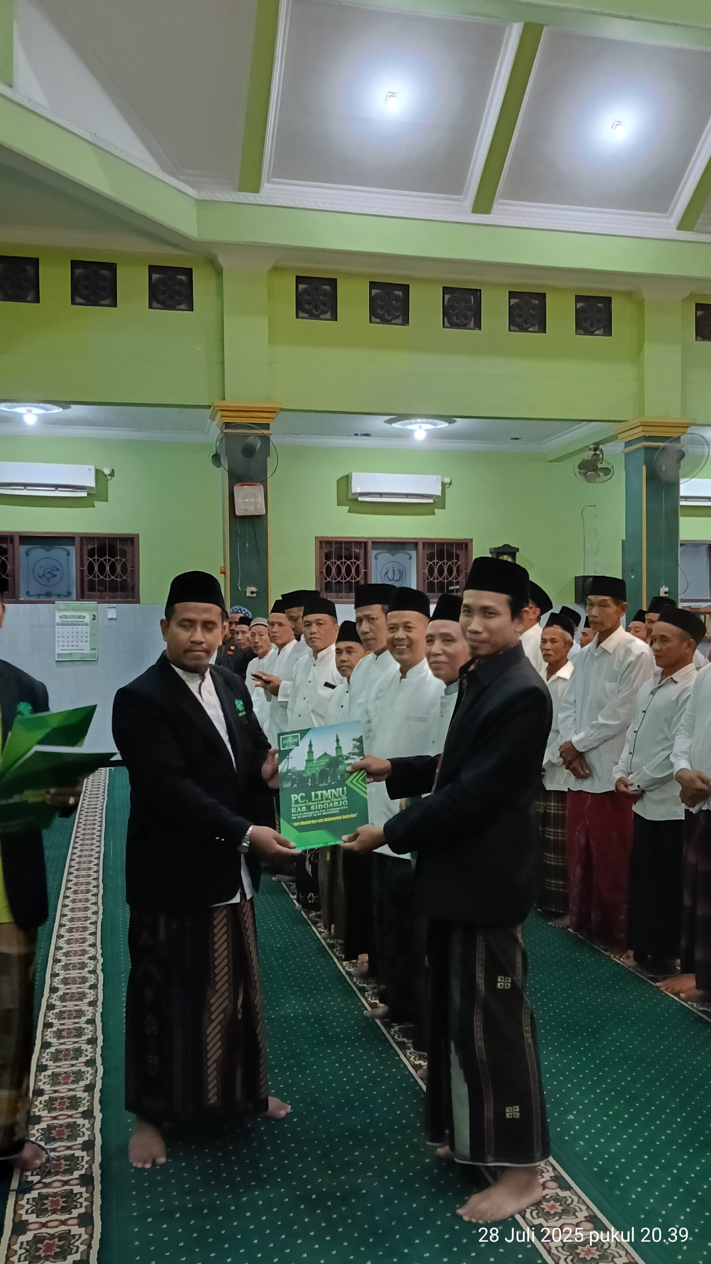 Foto : Penyerahan SK Pengurus Takmir Masjid Al Mubarak Kebonsari oleh Ketua LTMNU Cabang Sidoarjo ke Ketua Takmir Masjid Al Mubarak.